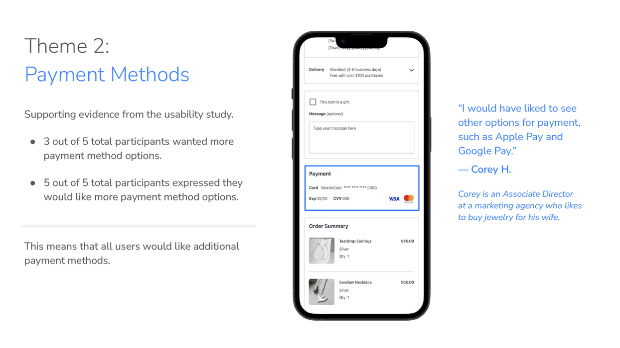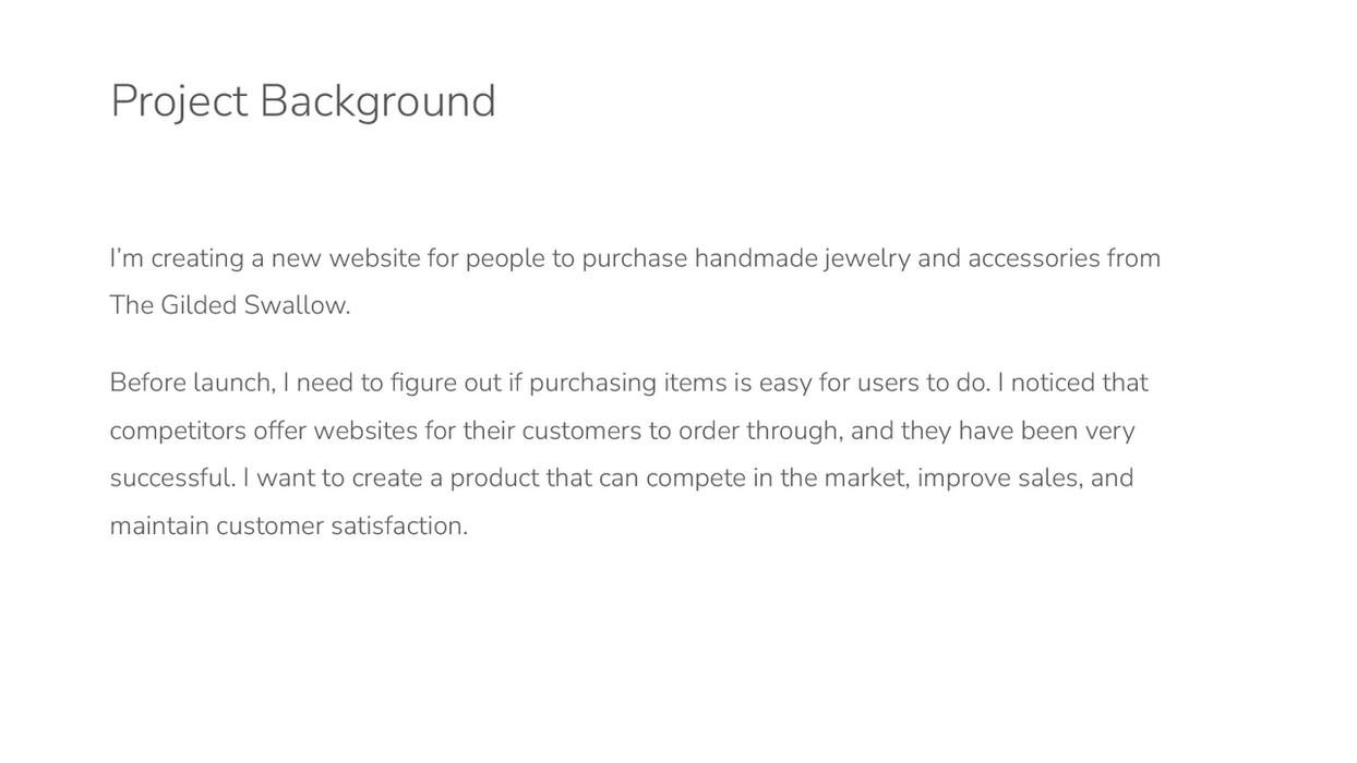 My user research entailed interviewing users who have purchased handmade jewelry that included: