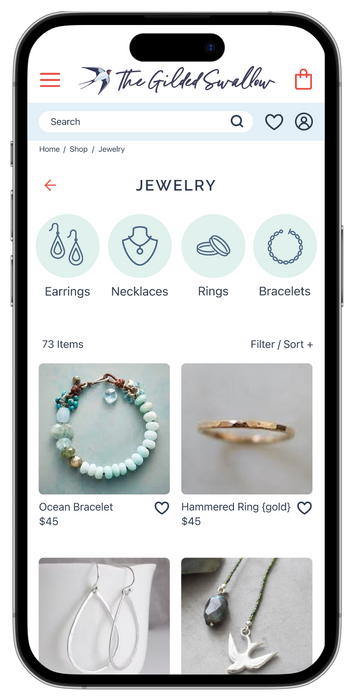 The Gilded Swallow website allows users to create an account to save their favorite products while enabling comprehensive search and sorting functions. Detailed material information is provided to help users choose items that won't trigger allergies.